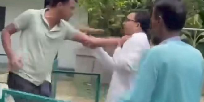 কানাইঘাট প্রতিনিধি: রাতে আওয়ামী লীগ নিষিদ্ধ করার পরই দিনের বেলায় চেয়ারম্যান আফসার উদ্দিনকে চরম হেনস্থা করা হয়েছে। ঘটনার বিবরণে জানা যায়, ৬ নং কানাইঘাট সদর ইউনিয়ন পরিষদের চেয়ারম্যান আজ (১১ মে ২০২৫) দুপুরে ইউনিয়নের চটিগ্রামে উন্নয়ন প্রকল্প দেখতে যান। সেখানে একটি রাস্তার কাজের হিসাব চান গ্রামবাসী ও স্থানীয় জনতা। এরই এক পর্যায়ে রাস্তার কাজের টাকা আত্মসাতের অভিযোগ এনে এবং আওয়ামী লীগের দোসর হিসেবে আখ্যায়িত করে চটিগ্রাম জামে মসজিদের সামনে উনাকে হেনস্থা করা হয়। আফসার উদ্দিনকে মারধর করতে থাকে স্থানীয় কিছু লোক। যারা মারধর করেন তারা সবাই বিএনপিপন্থী এবং উপজেলা বিএনপির সভাপতি মামুনুর রশীদ মামুনের অনুসারী বলে জানা গেছে।